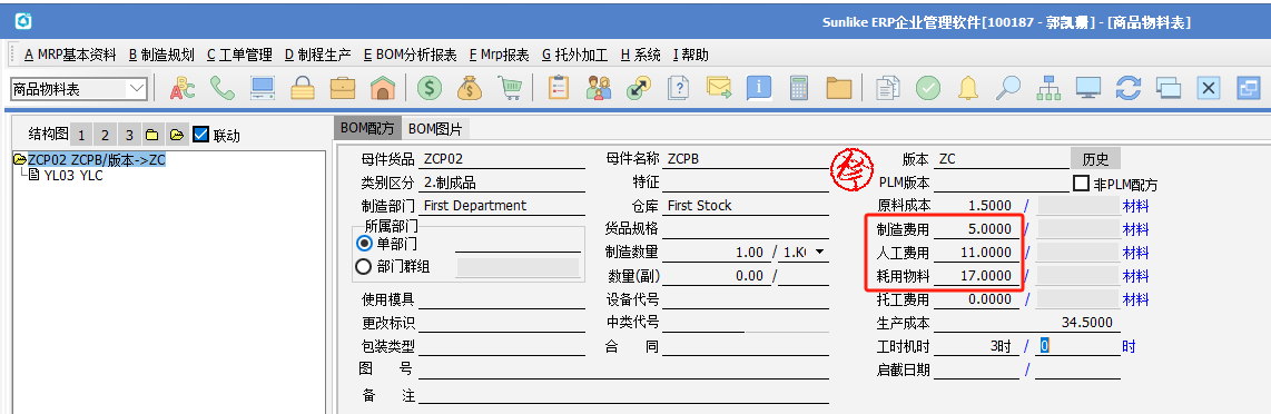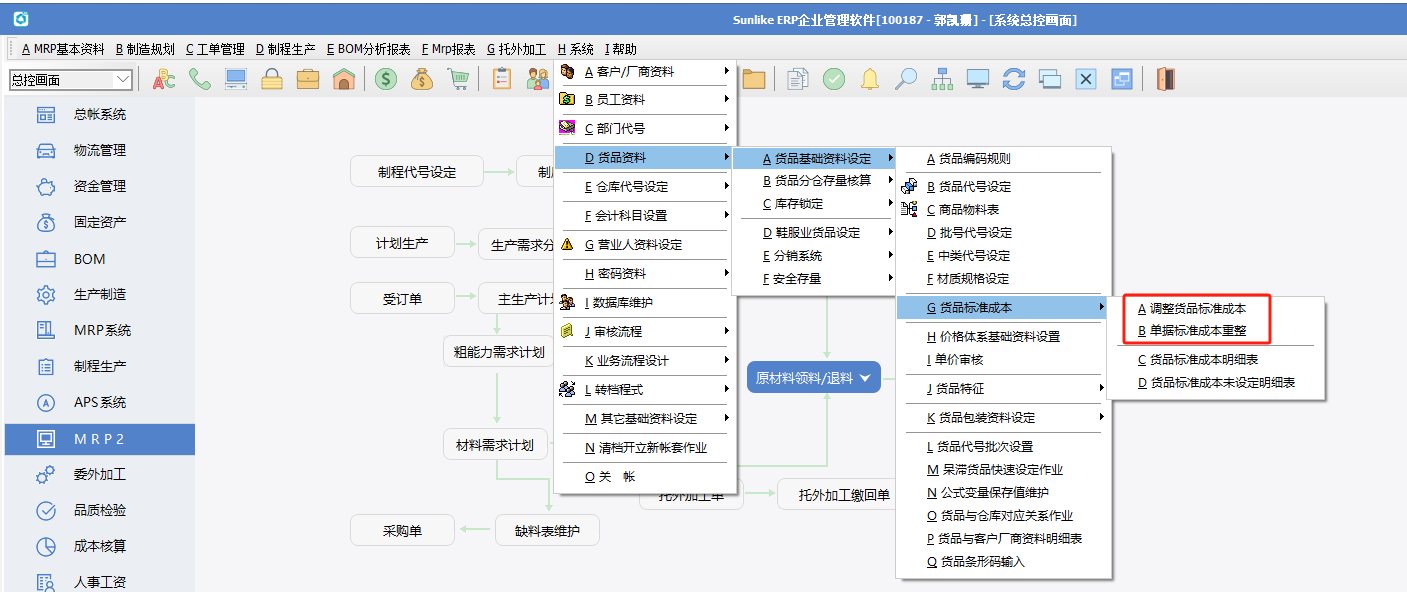 以原材料采購成本(采購政策、歷史價格、分倉成本等),再加上標(biāo)準(zhǔn)人工費(fèi)用、標(biāo)準(zhǔn)制造費(fèi)用等,按層級往上加,生成半成品、成品標(biāo)準(zhǔn)成本 1.刷新BOM的原料成本 路徑:系統(tǒng)--貨品資料--貨品基礎(chǔ)資料設(shè)定--貨品標(biāo)準(zhǔn)成本