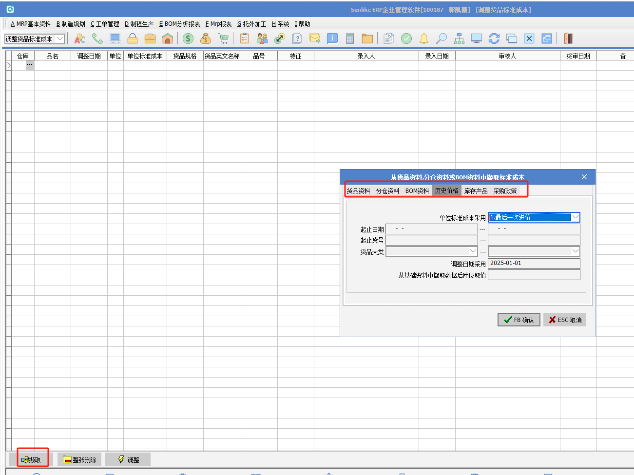 (1)在調(diào)整貨品標(biāo)準(zhǔn)成本設(shè)置對應(yīng)貨品的標(biāo)準(zhǔn)成本,可以從擷取里取貨品對應(yīng)的成本作為標(biāo)準(zhǔn)成本;