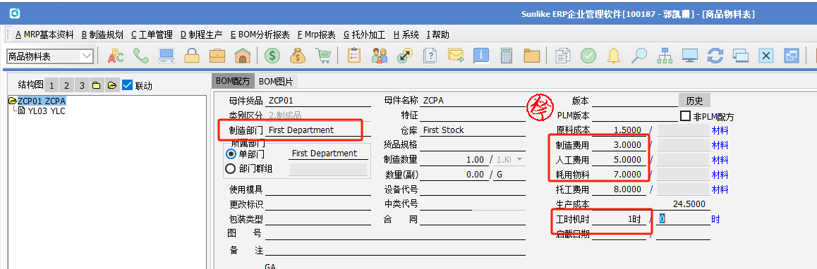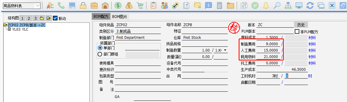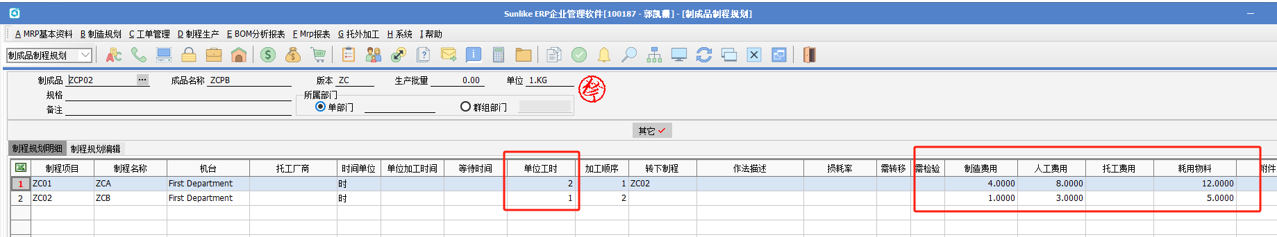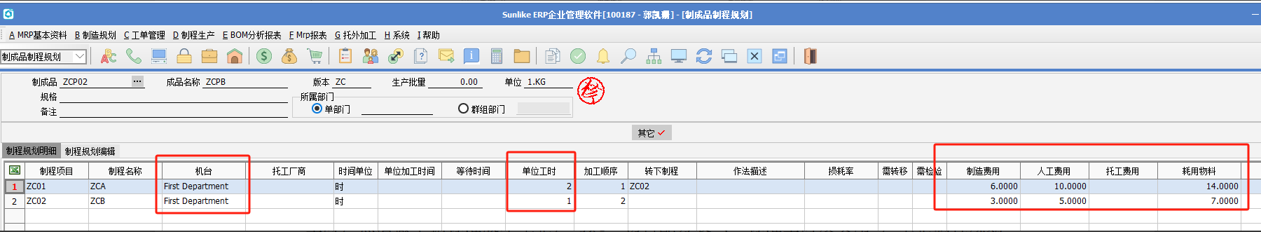 (1)直接從機(jī)臺信息輸入取費(fèi)率,BOM及制程規(guī)劃要錄入對應(yīng)的部門及工時,然后做單據(jù)標(biāo)準(zhǔn)成本重整,勾選“物料配方表”、“標(biāo)準(zhǔn)工時及費(fèi)用”,沒有制程的BOM直接根據(jù)機(jī)臺信息輸入的費(fèi)率刷新人工及費(fèi)用,存在制程的BOM先刷新制程規(guī)劃,再根據(jù)制程規(guī)劃刷新對應(yīng)的BOM。