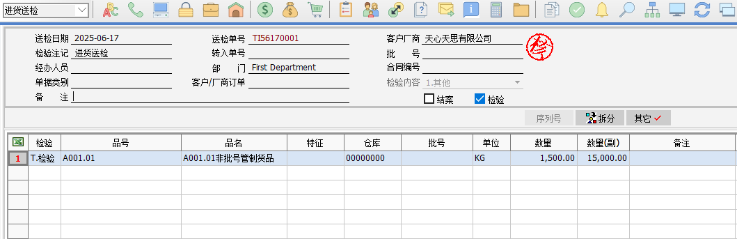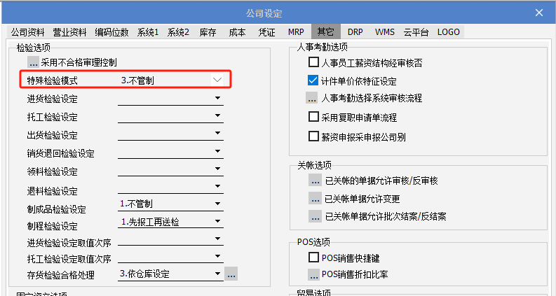 一、要點介紹根據(jù)客戶反饋,國標(biāo)規(guī)定的允收質(zhì)量水平(AQL)允許輸入向下(↓)或向上(↑)箭頭符號,用以表示樣本等級的浮動方向。這種浮動機制將同步影響樣本等級和樣本數(shù)量的確定,以及對應(yīng)的接收數(shù)量和拒收數(shù)量。本次修改需更新至2025年6月13號之后的A版。 二、正文內(nèi)容************* 1. 營業(yè)人資料-其他-特殊檢驗?zāi)J竭x擇2、抽檢方案模式或3、不管制。