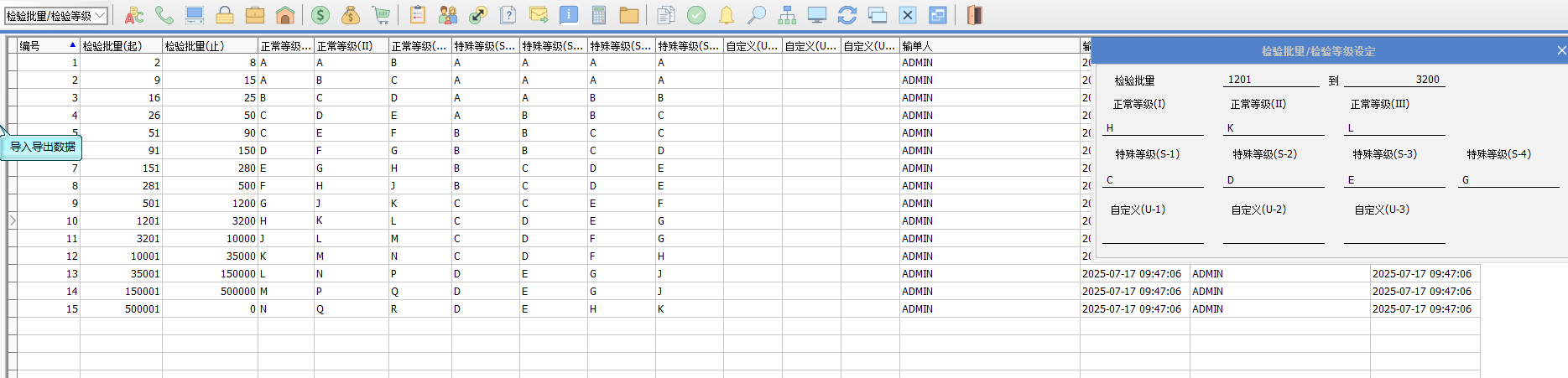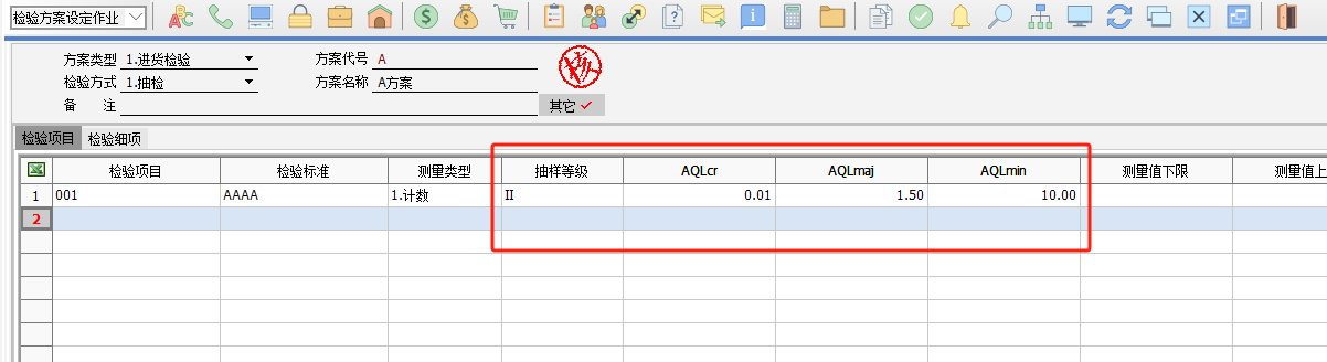 C、檢驗方案設(shè)定作業(yè):可根據(jù)自己實際情況設(shè)定檢驗方案,錄入抽樣等級、AQLcr、AQLmaj、AQLmin等欄位值。