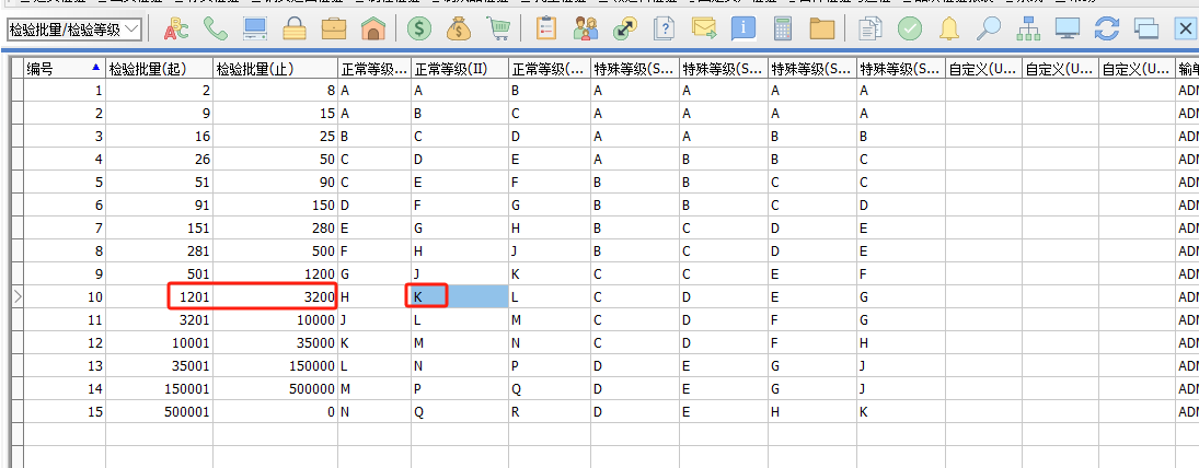 C、根據(jù)驗貨數(shù)量1500+抽樣等級II到【檢驗批量/檢驗等級設(shè)定】取到等級為K。