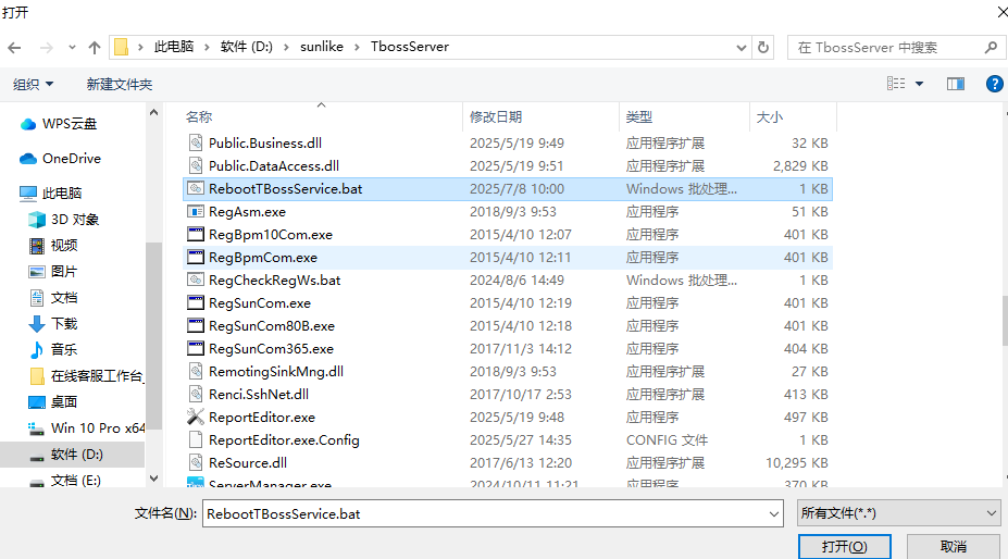 RebootTBossService.bat 文件里需要修改為ERP的TBOSS TbossGate.exe文件的路徑,然后把RebootTBossService.bat文件放到TbossServer文件夾底下,再創(chuàng)建任務(wù)計劃定時執(zhí)行該bat文件。