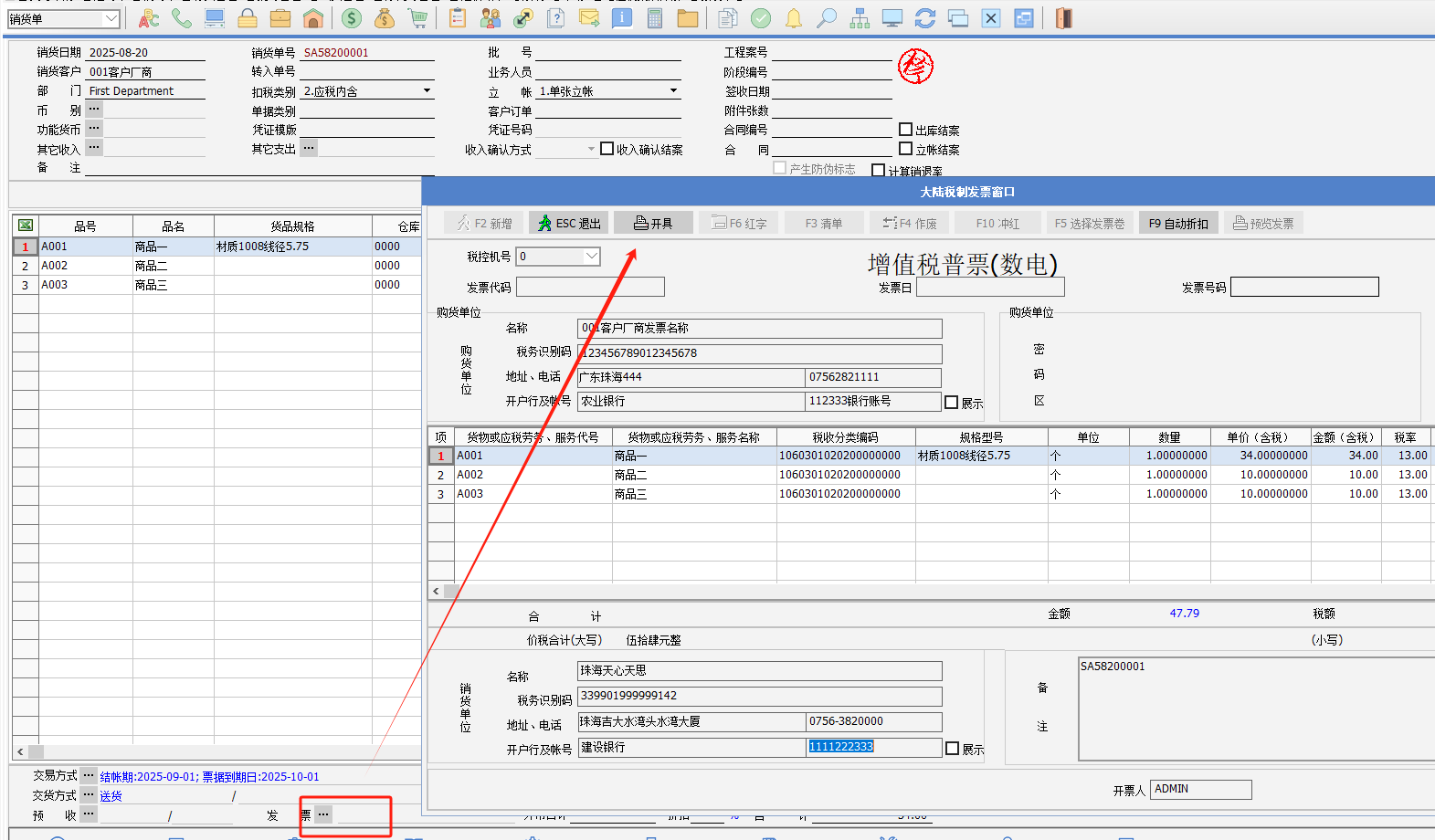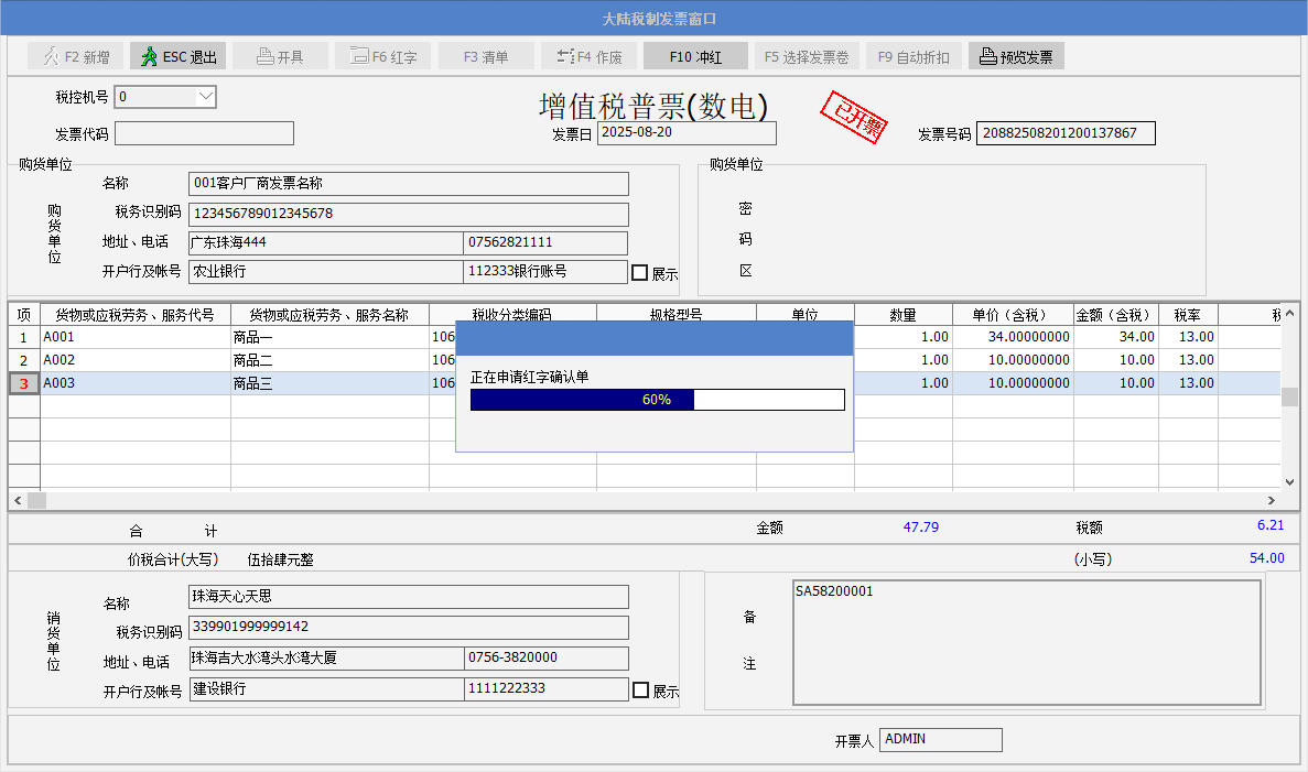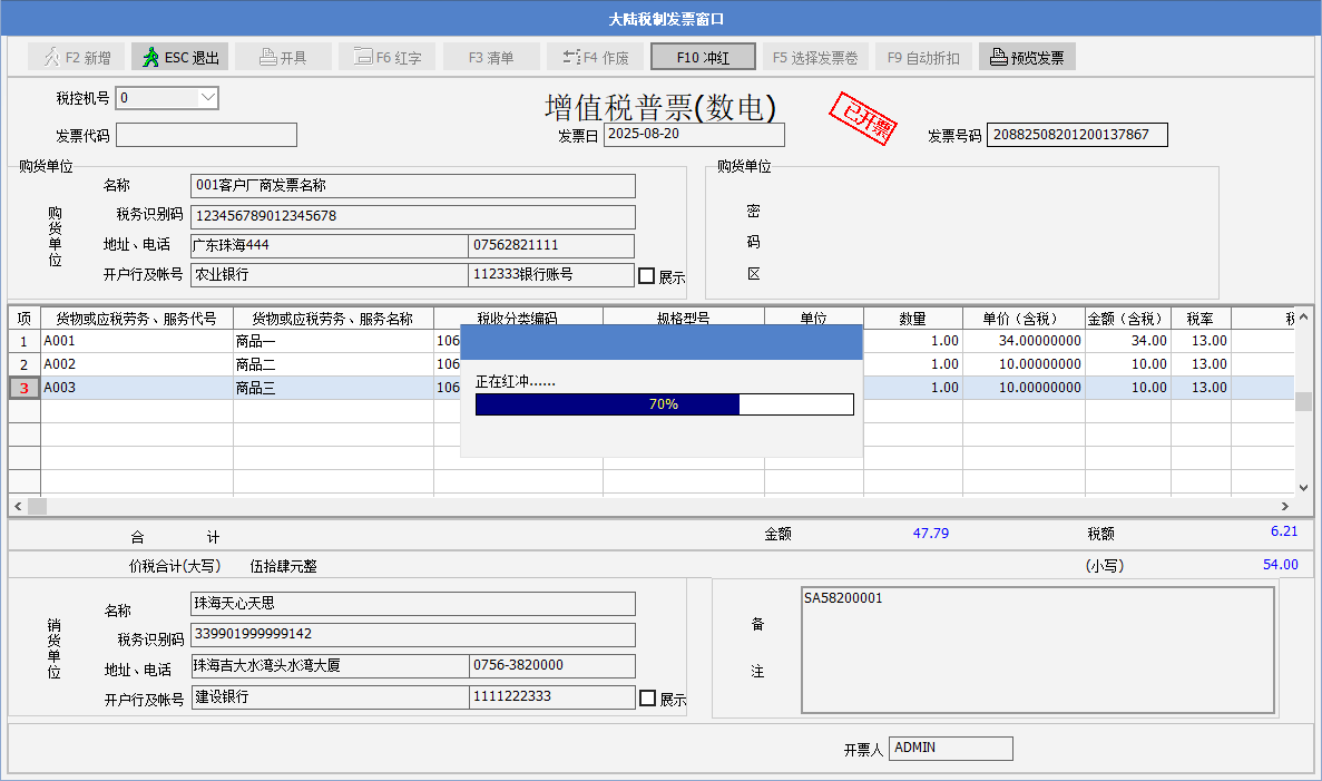 6. 單據的發票紅沖后,可以修改單據,繼續開出新的數電發票。